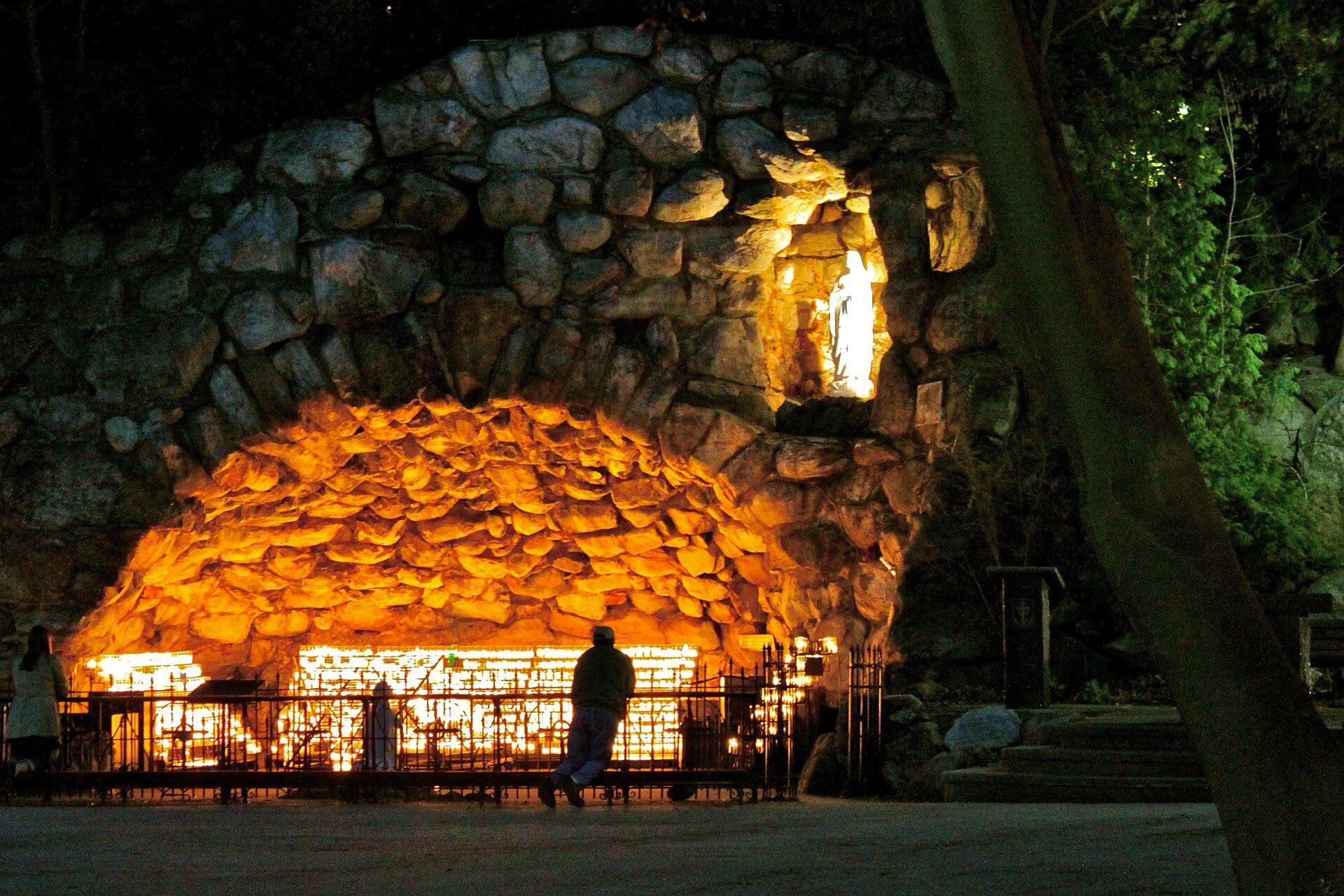 Notre Dame campus gotto. Credit: Know1one1 via wikimedia, CC-BY-SA-3.0.Students processed Feb. 27 to the university’s grotto, sang Marian hymns, prayed, and lit candles in thanksgiving for the result.